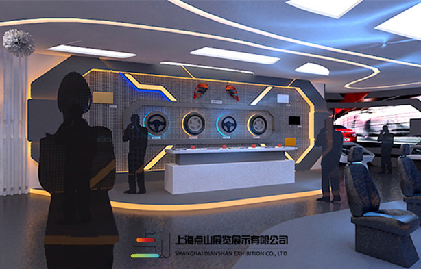 在展廳設(shè)計中,點(diǎn)山展示將雪佛蘭汽車展廳主要分為館名墻、品牌介紹、發(fā)展歷程、創(chuàng)新產(chǎn)品、展望未來五個展區(qū),運(yùn)用流暢的線條貫穿整個展館,展館主色調(diào)為藍(lán)色、讓展館科技感十足。