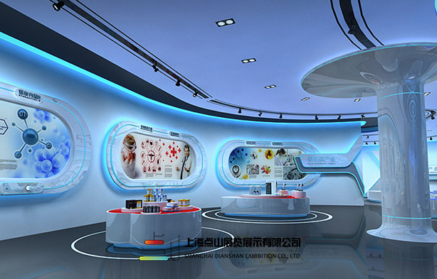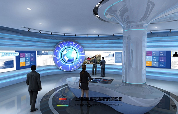 因展廳面積有限,可我司仍然提煉出2大特色亮點(diǎn)“發(fā)展成就體驗(yàn)互動(dòng)”“未來之光”,通過造型、燈光等手段突出重點(diǎn)展示內(nèi)容,對于企業(yè)發(fā)展歷程和未來展望在僅有的展示空間內(nèi),得到淋漓盡致的體現(xiàn)。