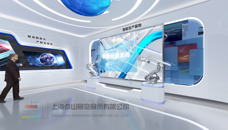 智飛創(chuàng)達是一家業(yè)內(nèi)知名互聯(lián)網(wǎng)智能科研企業(yè),企業(yè)注重企業(yè)文化的積淀和重視“人”的功能。點山團隊在經(jīng)過對智飛的精研后,提出“智能改變生活”“人文成就企業(yè)”策展理念,在展示的形式上提出“科技領(lǐng)銜”概念,在設(shè)計形式的表達上運用多媒體互動形式“重在體驗”同時堅持用合理布局的大空間感覺,動靜結(jié)合,相得益彰。在內(nèi)容上提煉企業(yè)文化精髓,對參觀者心理進行預(yù)判,在有限的參觀時間,有限的版面上給參觀者最深刻的回憶,使觀者“觀之有感,感而有思”。