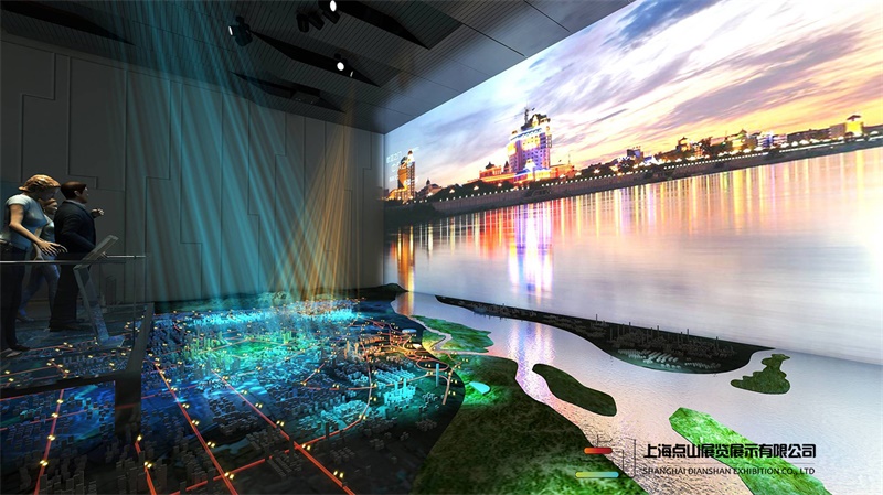 展廳共分為序廳、智慧、速度、夢想四個部分,來展示城市的今昔對比以及未來展望。同時項目在核心創(chuàng)意和亮點上,引用了多種多媒體技術(shù),從而呈現(xiàn)出極其豐富和具有科技感的展示效果。